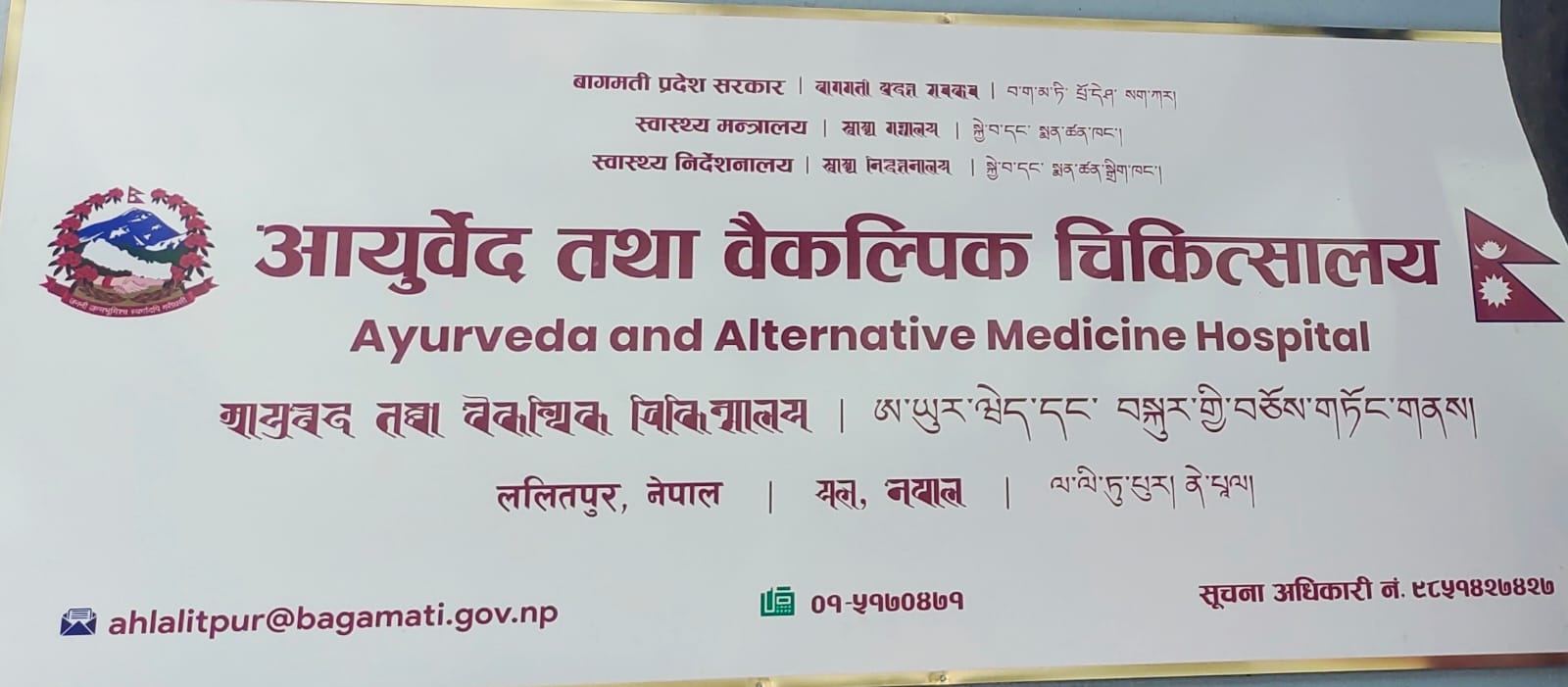 आयुर्वेद तथा वैकल्पिक चिकित्साको सर्व सुलभ तथा गुणस्तरीय स्वास्थ्य सेवा प्रवाह तथा विभिन्न कार्यक्रमहरू मार्फत स्वास्थ्य रक्षा