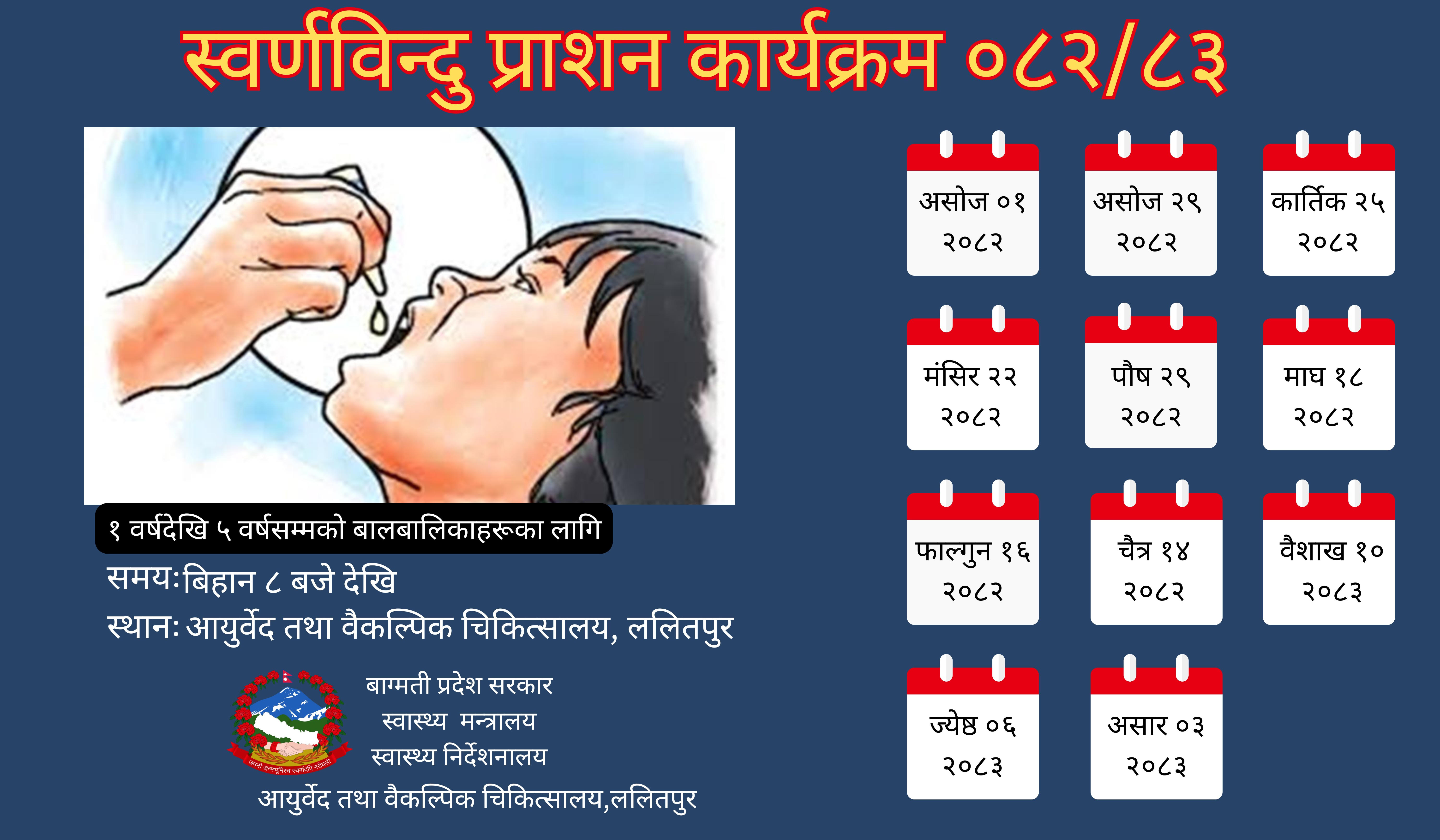 १ वर्ष देखि ५ वर्ष सम्मका बालबालिकालाई स्वर्णबिन्दु खुवाउने कार्यक्रम